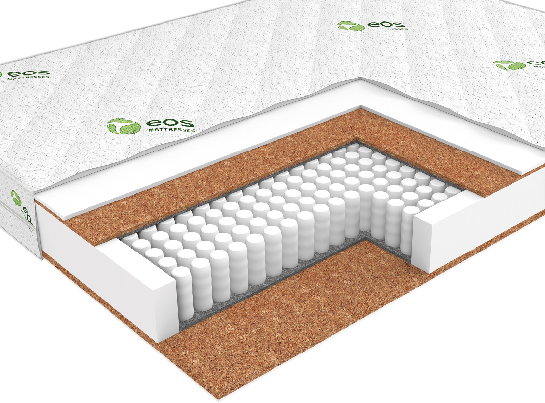 Натуральный гипоаллергенный материал. Благодаря пропитке из натурального латекса, волокна прочно скреплены в цельную плиту. Кокосовое волокно придает матрасу жёсткость и обладает бактерицидными свойствами. Производство – Enkev, Польша.