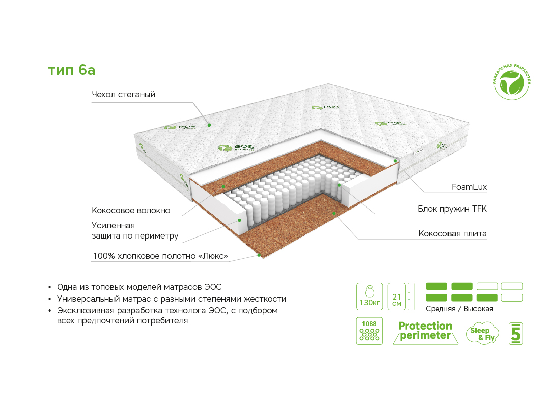 Матрас EOS Идеал 6а универсальный матрас с разными степенями жесткости, одна из топовых моделей.