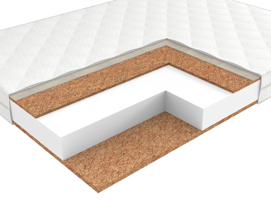 Натуральный гипоаллергенный материал. Благодаря пропитке из натурального латекса, волокна прочно скреплены в цельную плиту. Кокосовое волокно придает матрасу жёсткость и обладает бактерицидными свойствами. Производство – Enkev, Польша.
