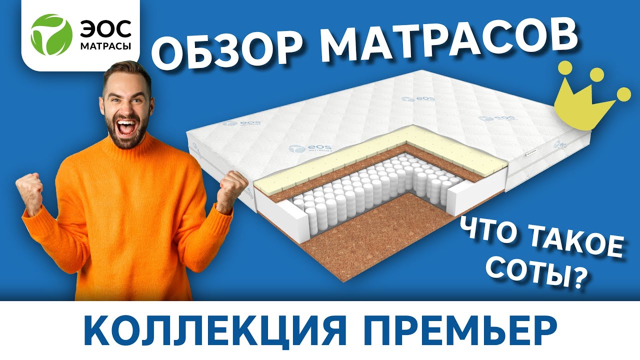 Видеообзоры Матрасы ЭОС с независимым пружинным блоком. Коллекция Премьер. Обзор матрасов для кровати Опубликовано ЭОС Матрасы 13.03.2024