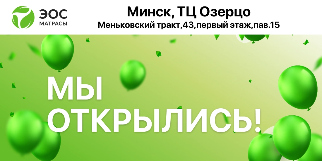 Мы открыли четвёртый салон ЭОС в Минске! Жители Юго-запада и окрестностей теперь могут посмотреть, потрогать, прилечь, оценить и купить матрас ЭОС в ТЦ «Озерцо»!